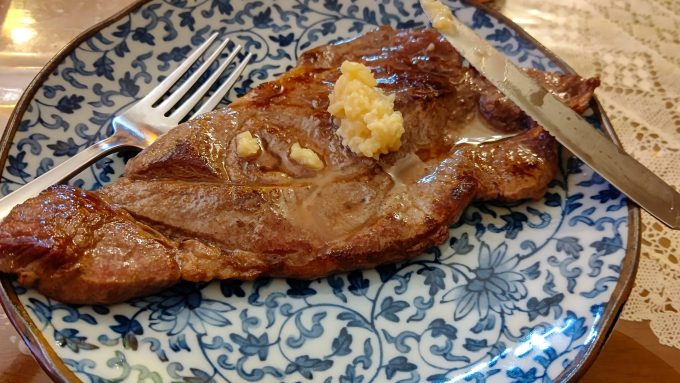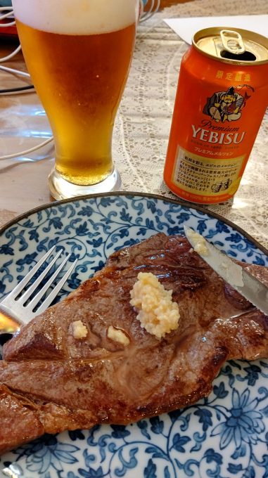 作るしかない ガリバタ!ステーキ編ブラック2022.10.19夕飯にステーキ作るYO男らしく焼いたらー! ソースはコレ! においなど気にしない!これぞ男! と、言いつつ食べ終えたらブレスケア爆食い(笑)