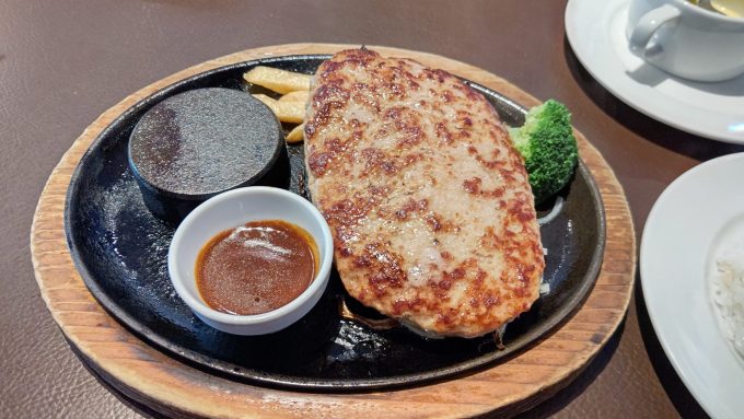 あさくまのランチハンバーグブラック2023.04.16お昼にステーキのあさくまにGO!!GO!!7188~今回注文したのが… ドデカッ!ハンバーグランチ! 重量300g!食いごたえがありますのう。 このソースも実に美味し。