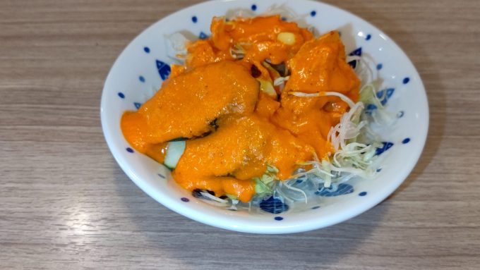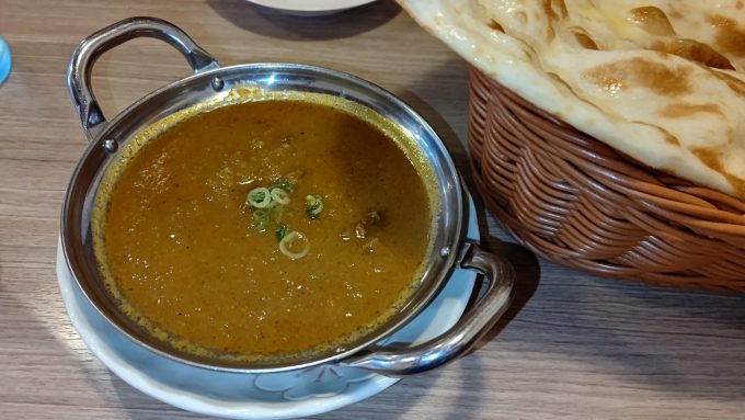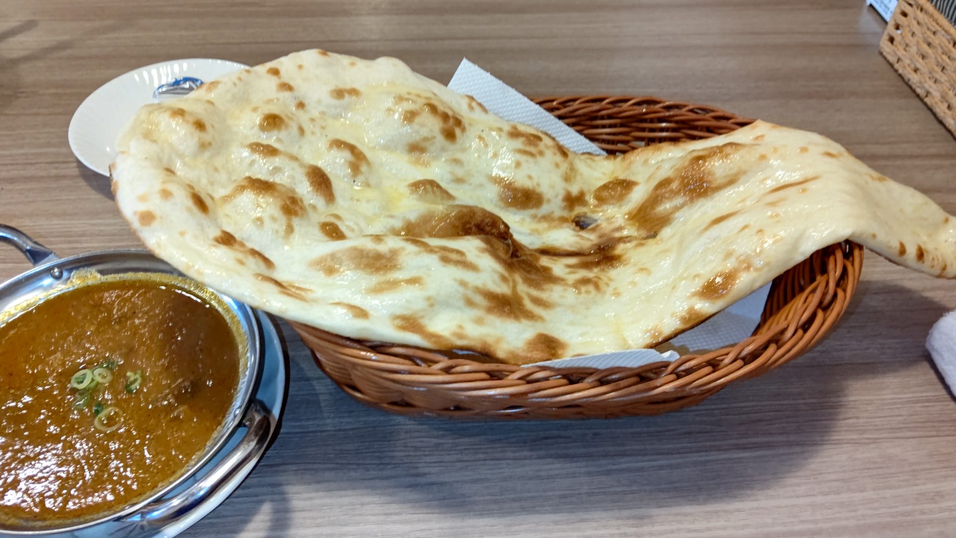 たまにはインドカレーブラック2023.08.22たまには食べたくなるよねインドカレー。普通のカレーとはまた違った旨さが。つう訳で、インド料理屋ラジャンへGO!!GO!!7188~ ランチメニューのマトンカレーを注文。まずはサラダ~ドレッシングの色的に辛いのか⁉って思ったけど、辛くないから一安心。ドリンクはインドっぽくアイスチャイ! キタキタ~!マトンカレー辛さは普通にしたから、辛すぎるのが苦手なワシでも大丈夫!これで800円だから安いやね。THE王道インドカレーで実に美味し!
