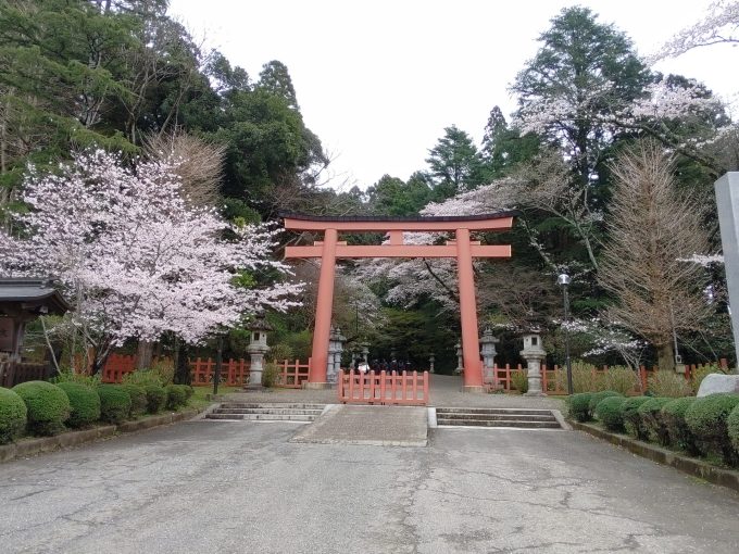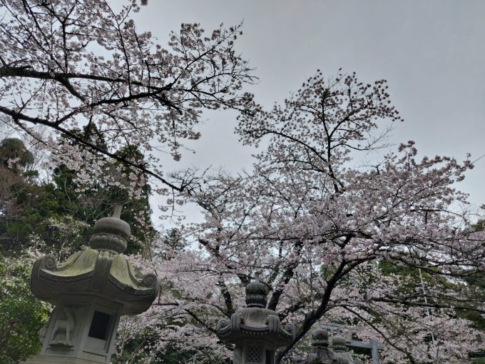 桜が良い感じに咲いてますねえ。これで晴れだったら更に良かったかと。
