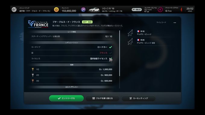レギュレーションはロードタイプのフランス車で、推奨PP500か、対応するクルマは…