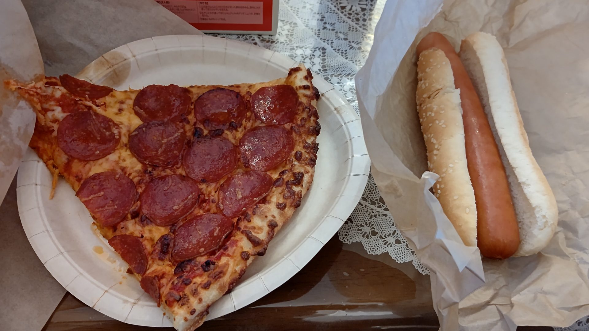 コストコのホットドッグとピザ~ブラック2023.05.12今日のお昼は、コストコのホットドッグとピザ~ アメリカンサイズでボリュームたっぷり!正直近所にこれだけの出店出てくれないかな~、って思います(笑)