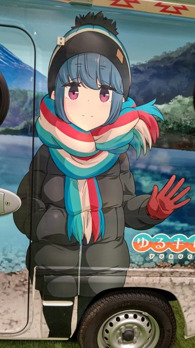 お、ゆるキャン△のラッピング車両もあるのか。まあ確かに昨今のキャンプブームに一役買ってそうだしな。