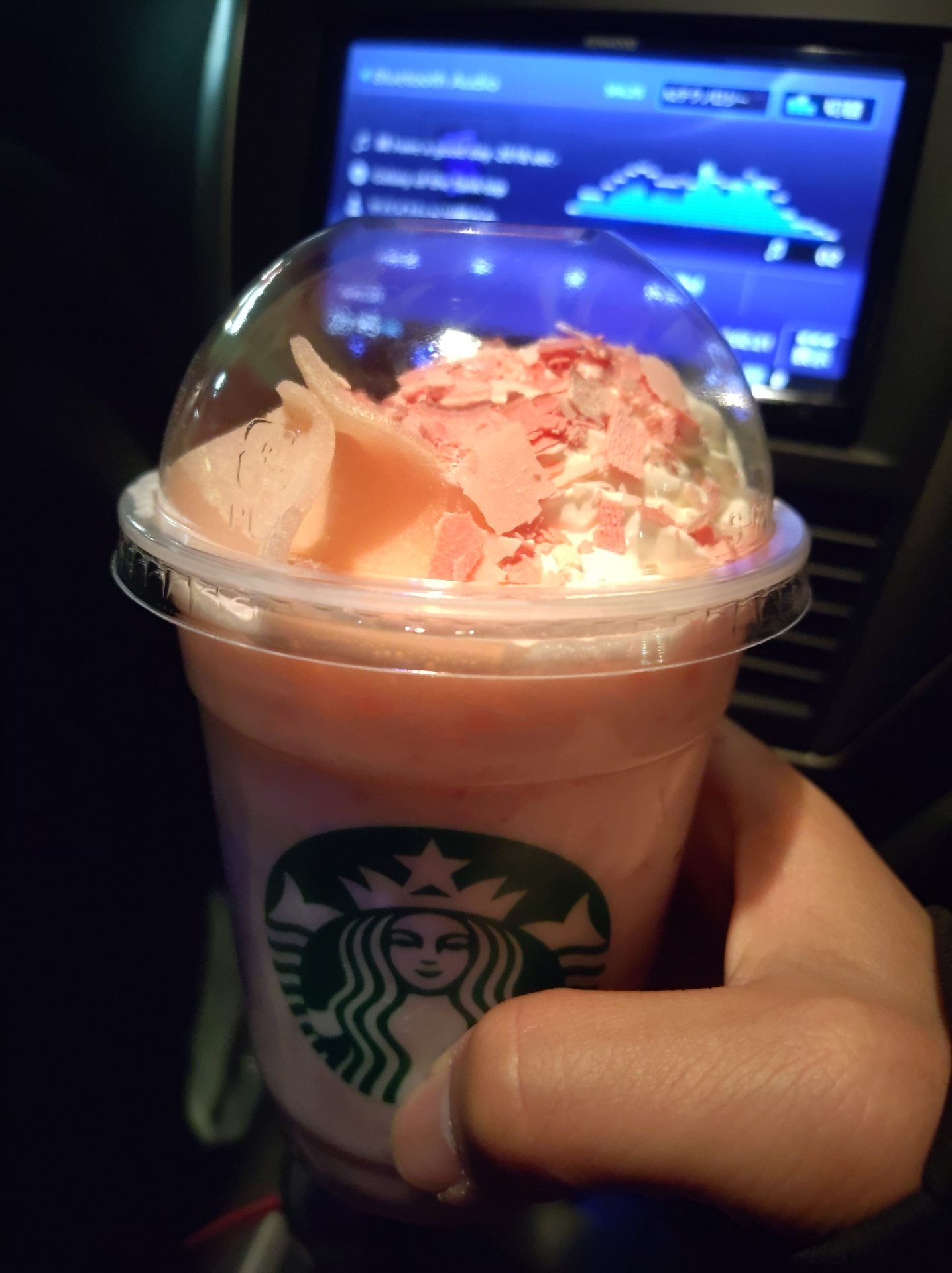 スタバ限定メニューブラック2022.03.05仕事帰りのプチ贅沢…、ドライブスルーでスタバ!つう訳で限定メニューのさくら白玉フラペチーノを頂きましたよと。 うん、実に美味い…、美味いんだけど…。 白玉が吸えない(笑) もうちょっとストロー大きくした方が良かったのでは?(笑)
