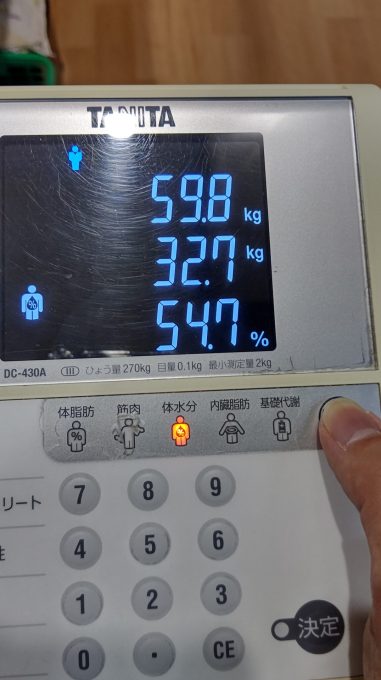 んで今回、体重計りまして、その結果は…