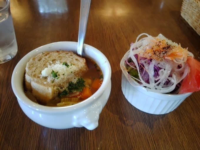 まずはサラダ&スープ。