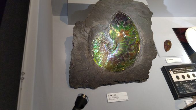 この展覧会を見に行こうと思わせた、アメシストの原石やアンモナイトやら。