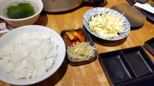それにライスとサラダとキムチともやしとわかめスープが付いています。