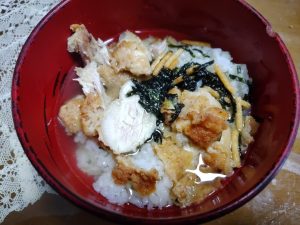 作るしかない ケンタッキー茶漬け編ブラック2022.05.24ケンタッキー・フライド・チキンは美味い!ただ買いすぎてつい余ってしまうものも… そんな次の日の朝飯に有効活用! バラして、永谷園のお茶漬けの素をかけて… ケンタッキー茶漬け! 染み出た脂がこれまた美味し!