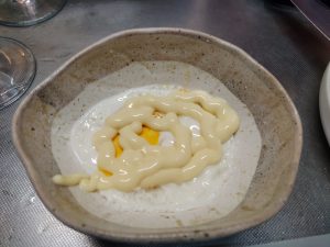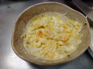 作るしかない サクっと自家製タルタルソース編ブラック2021.10.20ステーキ編で作ったディアボラソースで残った玉ねぎ使って…お手軽タルタルソース作り~ まずはタマゴをレンチンして、即席ゆで卵を作ります。大事なことは、チンする前にフォークで黄身に穴を開ける事でないと黄身が爆発しますよん。 したらタマゴにマヨネーズと刻み玉ねぎを入れ、フォークでタマゴを崩しながらほぐします。ジャーン‼完成~ 夕飯の総菜の魚系フライも、コイツで美味しさアップです。