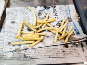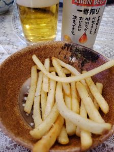 作るしかない トンカァァァァァァァツ‼ついでにフレンチフライ編ブラック2022.04.11弁当のおかずにトンカァァァァァァァァァァァァツ‼を揚げる!仕事上がりの夕飯前でもなァ! ホイ、もう作りまくってるからよゆうのよっちゃん酢漬けイカ(笑) 折角なんで… ついでにフレンチフライも揚げました。やっぱ揚げたてサイコー。