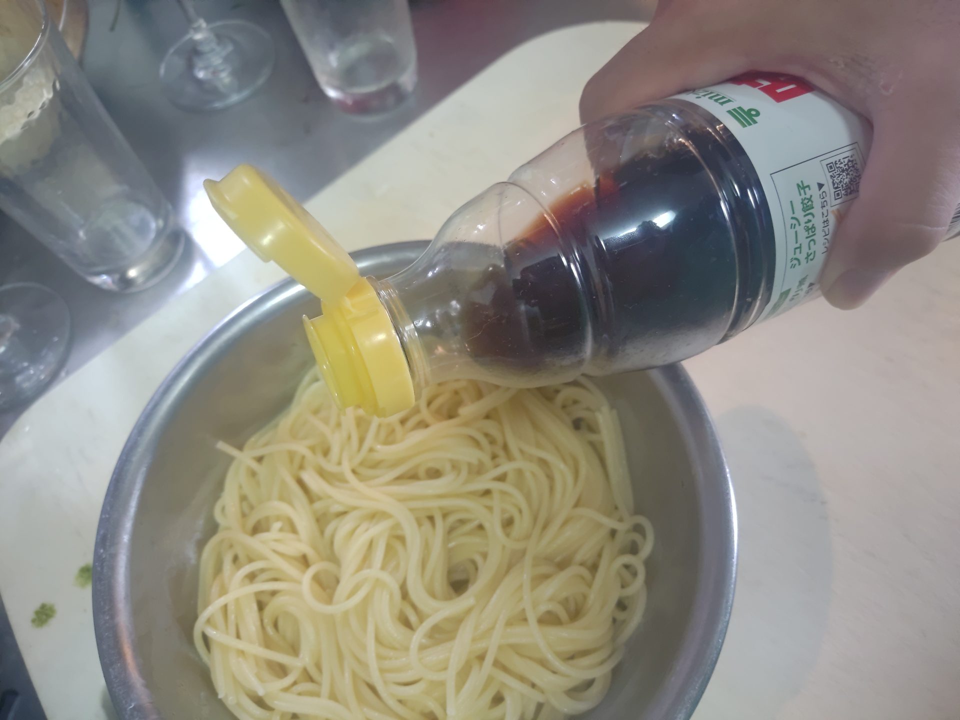 作るしかない ミョウガとポン酢でサッパリパスタ編ブラック2022.08.08弁当にパスタ作るYO! パスタはレンチンで手間を省き、その間に ミョウガとネギを刻み具の豚バラを炒め オリーブオイルにチューブのショウガで風味をつけ さっきのオリーブオイルと味ぽんで味付けしつつ、ミョウガとネギを散らし、豚バラ載せて ハイ完成~!ほんのりジンジャー風味のサッパリポン酢パスタ!夏にぴったりでさあ。