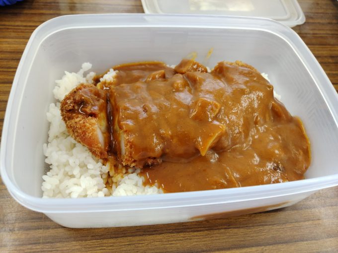 米とカツとレトルトカレーを持って行き、お昼にレンチン。