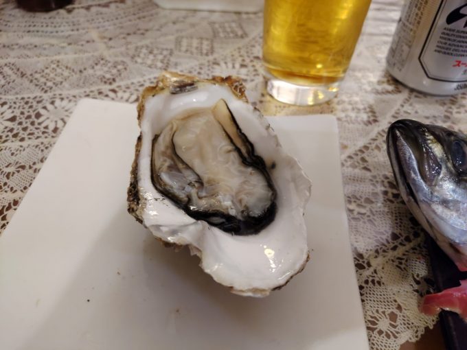恐らくなかみなとお魚市場で、何回も生ガキ食べてるので、それで見よう見まねでやる様になったかと。