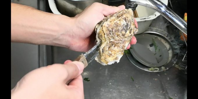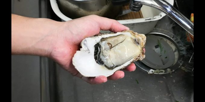 カキの殻剥き、簡単そうで難しい。刃が入る場所が中々見つからんのですよと。