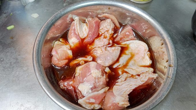 前日に漬け込んだ鶏肉
