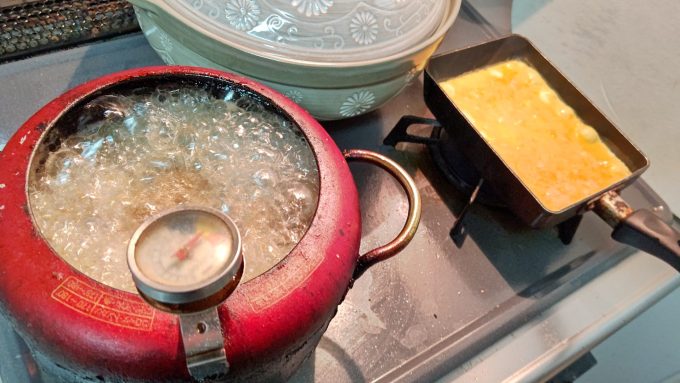 揚げつつ玉子焼く