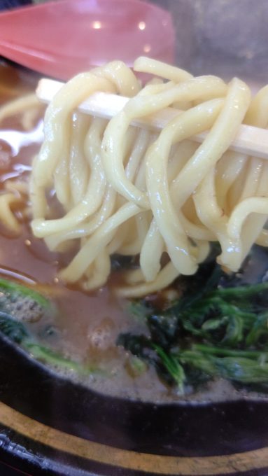 家系定番の中太麺で美味し。