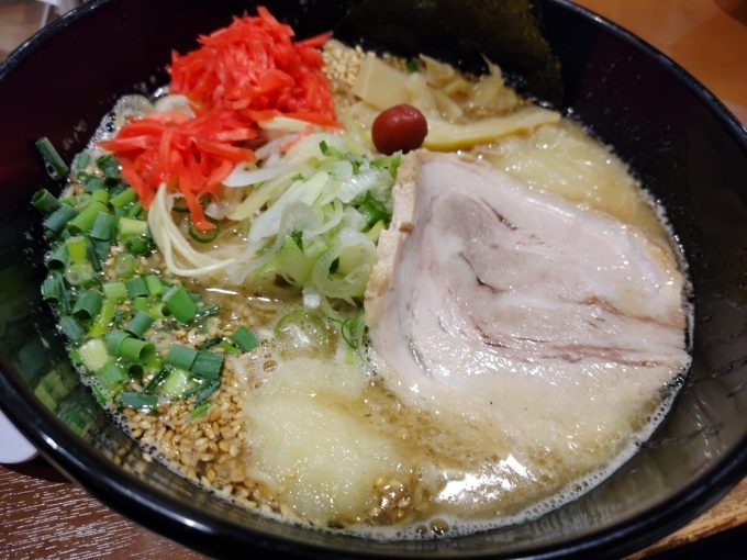 平九郎ブラック2022.10.09職場の皆でラーメン!今回向かったのは… 九州豚骨ラーメン、平九郎!ここ来るの何年振りだろうねえ。 麺の硬さはバリカタ、九州豚骨は固くなきゃのう。 お薦めのトッピングはメンマ、何故って… こんなに長いから(笑)これ位長いのはもちもちの木以外では見た事ねーです。因みに今回は珍しくピッグの奴は来てません(笑)