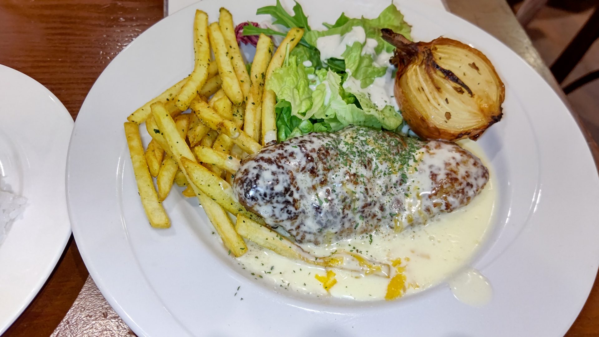 旅する小ブタブラック2023.03.29所用で都内へ。お昼に向かったのが、東京駅に在るワイン食堂旅する小ブタ! ランチメニューのチーズフォンデュハンバーグ。チーズが効いてて美味し。 ハッピーアワーで半額だから、頂きました(笑)