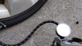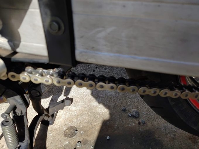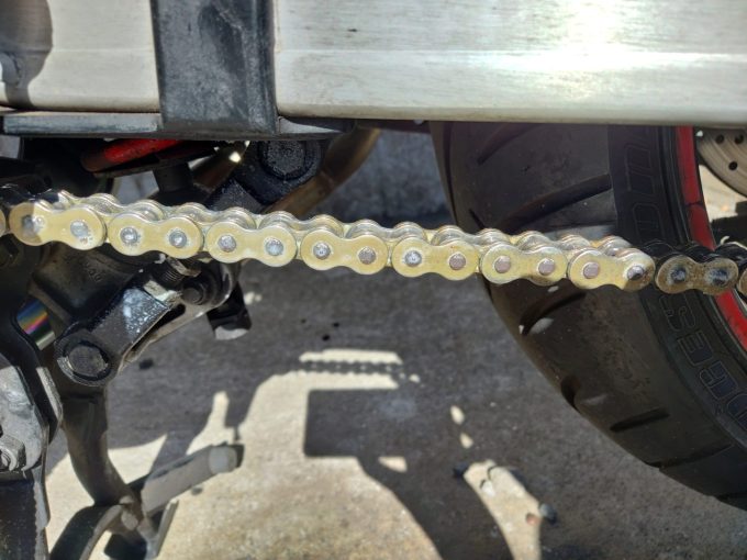 うっすらと被ってる白い物はチェーンルーブ、スムーズに動かすためには注油が大事。