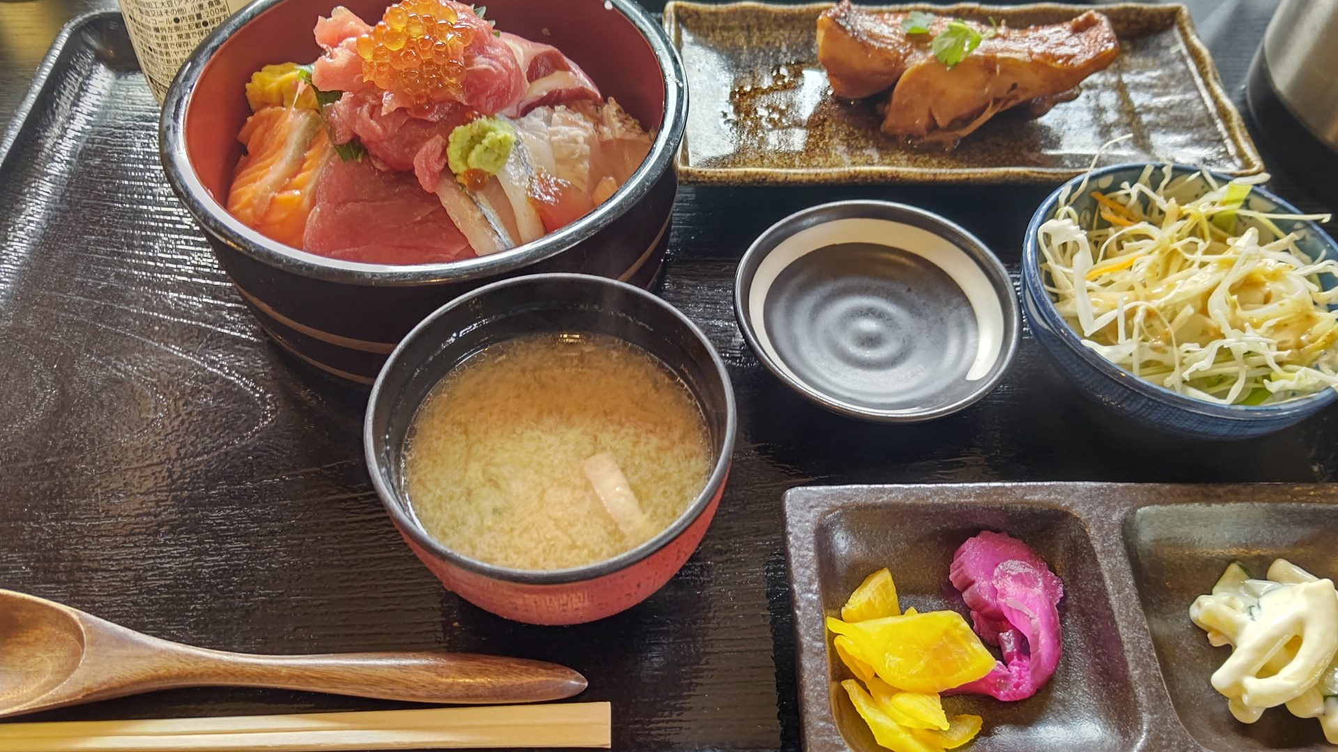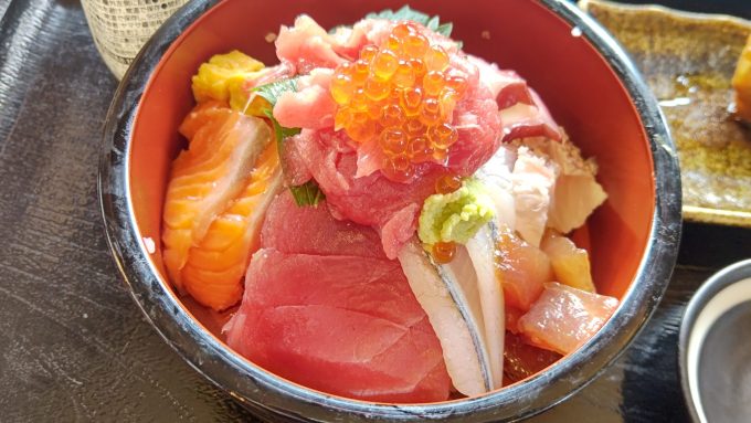 花みちの海鮮丼~ブラック2023.10.09お昼に地元の和食屋花みちへGO!!GO!!7188~本日頼んだのが~ KAISENDON! どうよ?子の刺身の量!隠れてる部分にも刺身があり、正直ご飯が足りなくなるレベル。 煮魚の付いて2000円切ってるから安い!味も美味し。