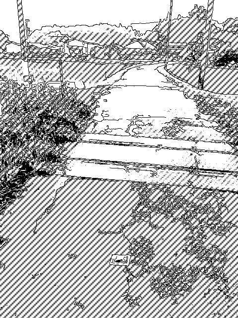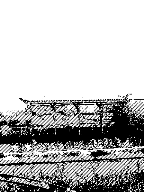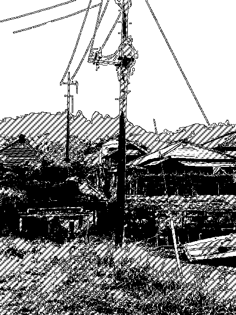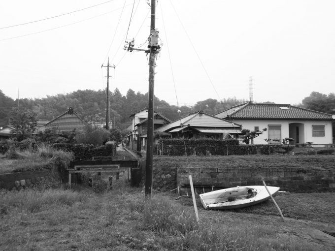 モノクロで過去の新聞の写真の様な雰囲気、台風の影響でボートがここまで流されてきました的な(笑)