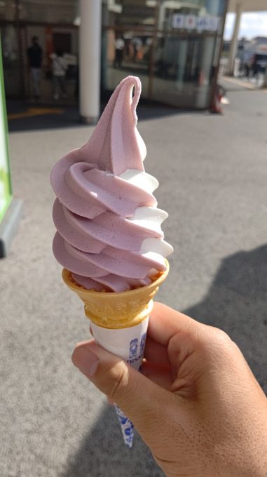 高速教習で巨峰ミックスソフトブラック2023.09.30最近、特に朝晩は涼しくなってきましたね。着実に秋が進んでる今日この頃、高速教習で食べたのが… 季節限定、巨峰ミックスソフト巨峰の風味が甘酸っぱくて美味し。わたぼく牛乳のソフトクリーム屋で売ってるよん。季節限定だから、高速教習へダッシュで進めよう!
