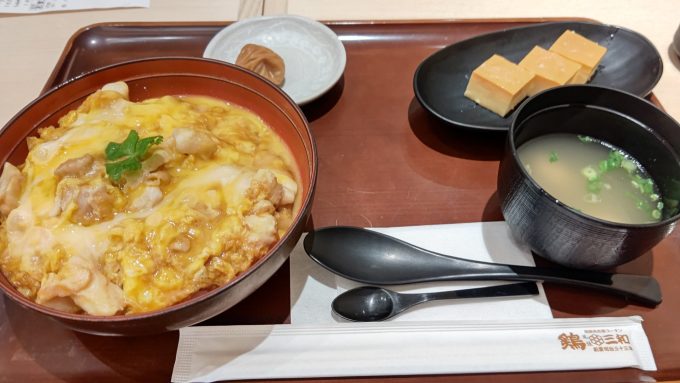 鶏三和の名古屋コーチン親子丼ブラック2023.08.28休日!都内!お昼にヤエチカへGO!!GO!!7188~ 鶏三和の名古屋コーチン親子丼~普段外で親子丼食わないけどたまにはね。 どうやったら作れるの⁉って感じの滅茶トロトロ親子丼!流石プロ!って実感させられる美味さ! プリンも良い感じに美味しでさァ。