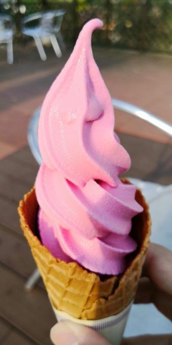 京成バラ園ブラック2019.11.09ちょいと所用で千葉市方面へ用事済ます間に京成バラ園へ行ってきました ちょうどシーズンらしく、入場するとバラの香りが場内一面に香り心地よい… そして今日は運良く地元の高校の吹奏楽部が演奏していたので、演奏も楽しみつつ散策 曲目は嵐のメドレーとかやってたなここで売っていたのが変わり種のソフトクリーム なんと…バラ味!!美味しかったけどバラ食べた事無いんで、再現出来てるかはわかりません(笑)