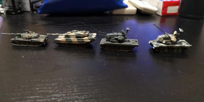 左から74式戦車、90式戦車稜線射撃、87式自走対空砲×2