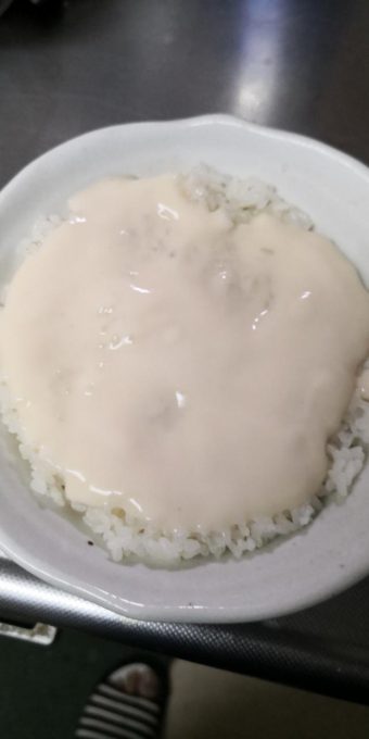 まずはご飯を耐熱皿に移し、ホワイトソースを均一にかける