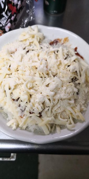 最後にシュレッドチーズとパルメザンチーズをかけたらオーブントースターで10分程加熱
