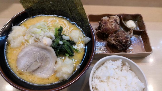 ラーメンは安定の家系の味で、チャーシューも中々旨い。たまにラーメンは旨いけどチャーシューは微妙な店も有るから、チャーシュー旨いのはナイス。唐揚げもおすすめだけあって、サクサクしっかり味がしてTHE唐揚げな感じ。ライス込みで270円はお得やね。