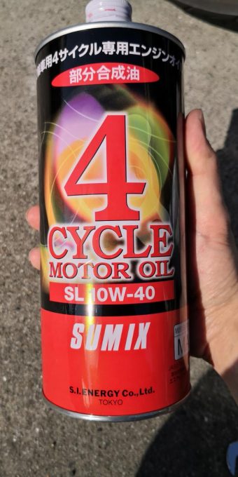 そうと決まれば、早速ジョイフル本田行ってオイルと廃油処理箱買いましょう。スカイウェイブの推奨オイル粘度は10W-40。なるべく安いのを探すと、1L764円の格安オイル発見。普通のメーカー物だと10W-40のオイルは安くても千円超えるんで、764円は実に安い。