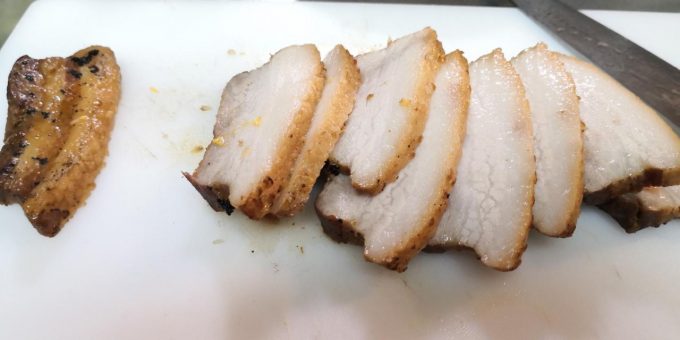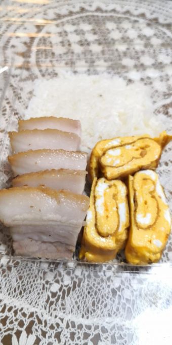 作るしかない バラブロックでチャーシュー編ブラック2020.03.23今日の弁当のおかずはチャーシューとだし巻き玉子チャーシューは流石に朝作ってる暇無いんで、前日仕事終わって家帰った時に作りました。 作り方はバラブロックをフライパンで焼き目を付けて、その後醤油100ML+水200ML+砂糖少々+酒少々+おろしニンニク少々+味の素+創味シャンタンで30分程煮込んで完成~ 煮込む所までいっちまえば、後は飯食ってる間に出来るので、ある意味楽チン だし巻き玉子の出汁はガラスープの素使って中華風に出汁の分量が良かったのか、久しぶりに綺麗に出来ました