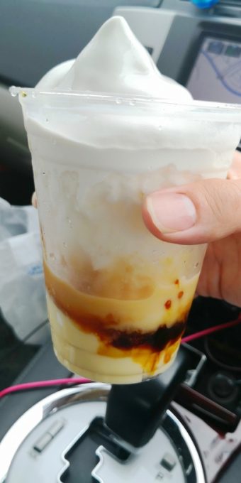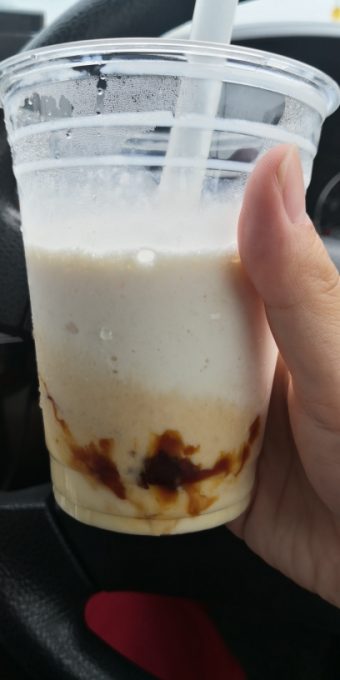 つう訳で、フライドポテトSサイズと、プリン好きなんで、たまたま目に入ったプリンシェイクを注文