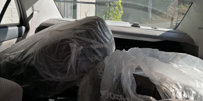 新しいスタッドレスタイヤは、ヤフーショッピングで購入し、配送先をお店にして有るので運ぶ必要は無しです