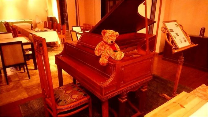ピアノに乗っかるテディ○ア。良かった…こっちはイエローグリズリーじゃない。
