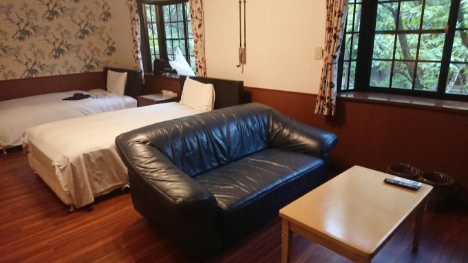 そんなこんなでなんとか現地に到着!今まで泊まったホテルは街道沿いだとか目立つ立地のところが多かったけど、今回は軽井沢らしさを全面的に押し出したかったので森林の中のコテージ風なホテルを選んでみた。まぁコテージと表現するには予想以上に立派な外観だったけど。