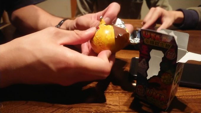 初桃太郎電鉄の感想!まぁ簡潔に言えば「電子版すごろく」ってところだね。さっそく興味の対象は私と鋼鉄豚君が購入した「チョコエッグ UMA未確認生物」へと移る。ここにも一人UMAがいるけど気にしない。
