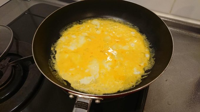 ふわっとろオムライスNob2020.04.17外出自粛なのでオムライス作った玉子×4個冷凍チキンライスケチャップ牛乳玉子をシャカシャカします!フライパンで焼いていきます!チキンライスに添えて完成!チキンライスは冷凍だから調理がめっちゃ楽!所要時間も5分かからず作れちゃうから、小腹が空いたときにはおすすめだね( *´艸`)