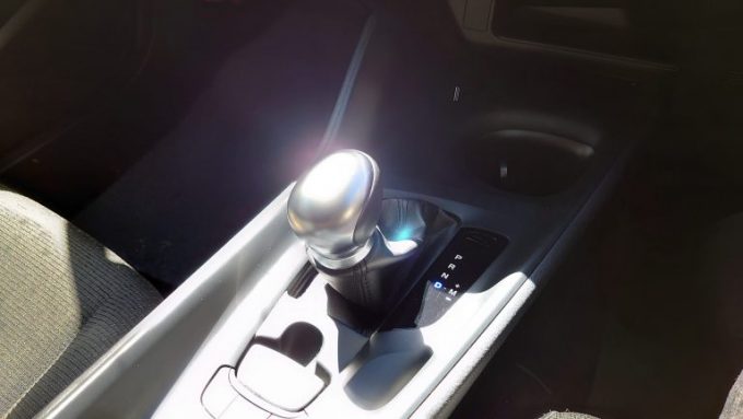 シフトレバーはまぁふつう。パーキングブレーキは引いて作動、ドライブギアで自動解除される。普段教習で説明しているようなサイドブレーキとか足踏み式パーキングブレーキとかは将来的にこれに置き換わっていくのではないだろうか。