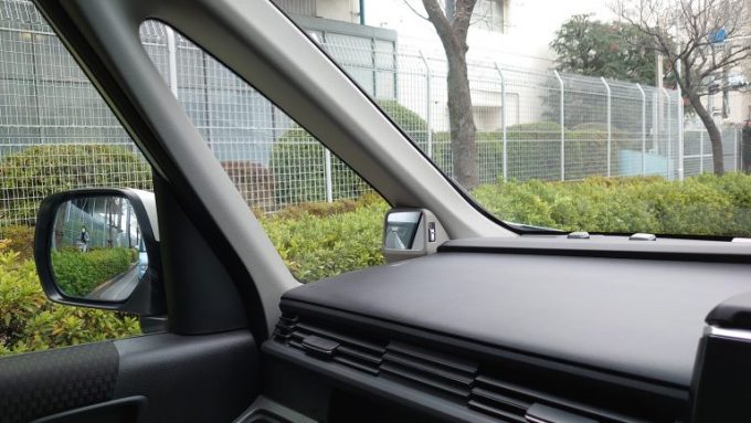 Aピラー部の補助ミラー。こういった安全装備はコストをかけてでも充実させたほうがいいよ。