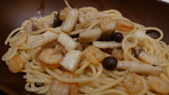 アサリがなかったからシーフードにした。冷凍だからふつうにアサリを買うよりも安い。