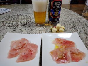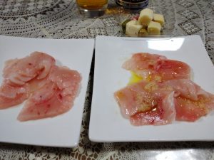 びんちょうは半分は刺身、もう半分はカルパッチョにして頂きました。